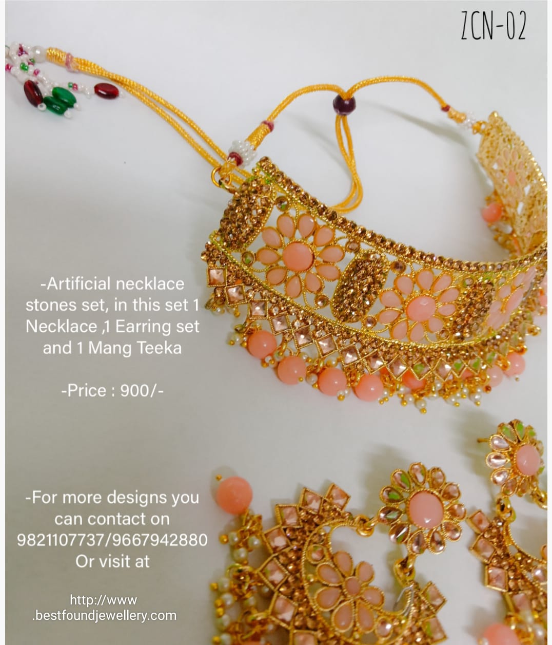 Artificial necklace stones set, in this set 1 Necklace ,1 Earring set and 1 Mang Teeka