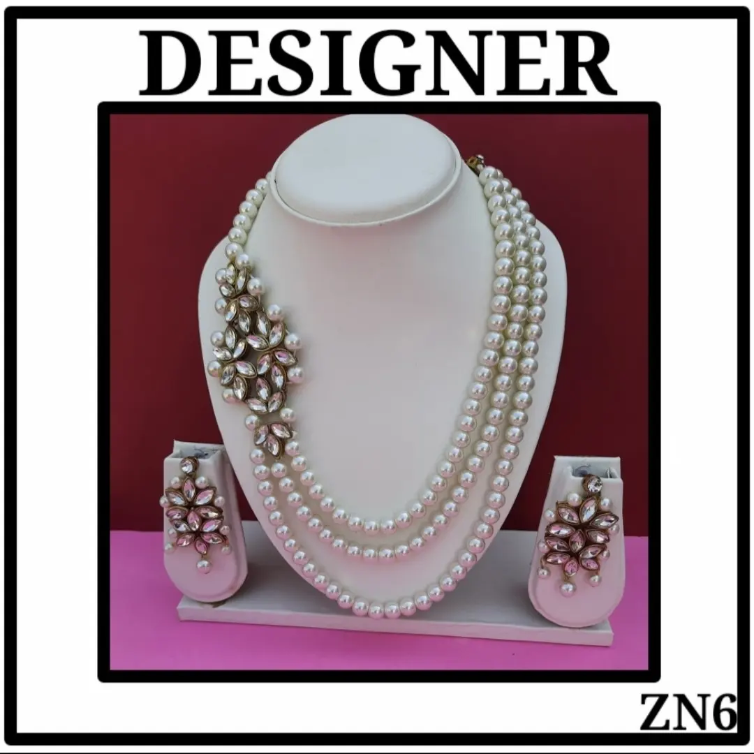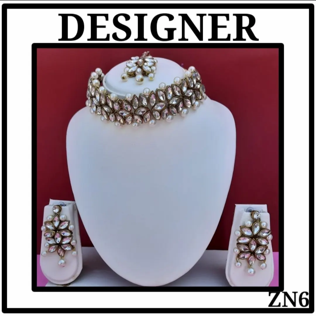 In this set : 1 choker necklace,1 three line pearl necklace, 1Earring set & 1 Teeka
